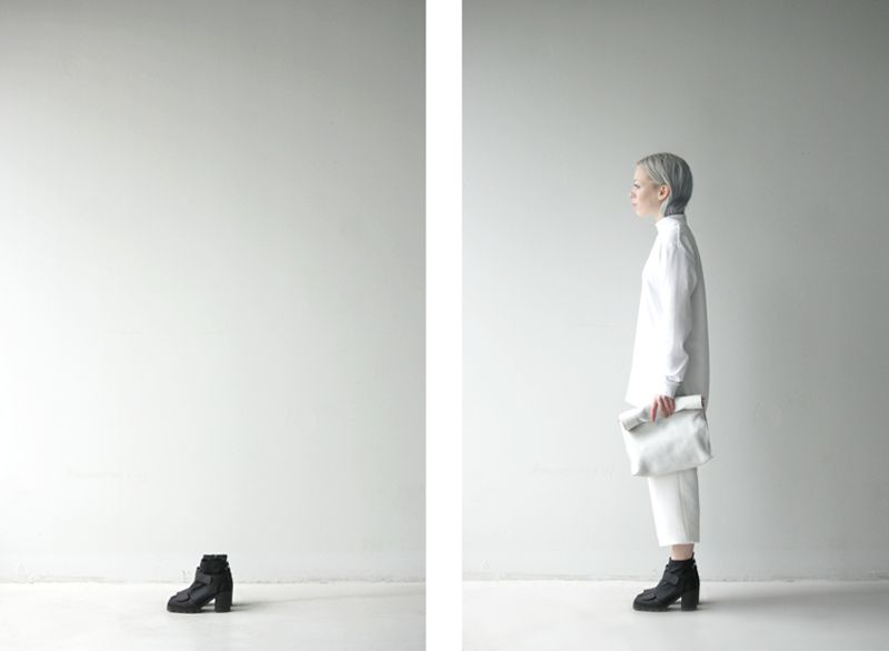 A neoprene sock attached to a pair of chunky, squared sandals on a thick rubber grip sole. Thank you weekday for answering our prayers and putting all this goodness in one single shoe. Though the first samples that appeared in the lookbook featured a white sock inside a black sandal, they ended up producing it in black on black. A bit of a shame.